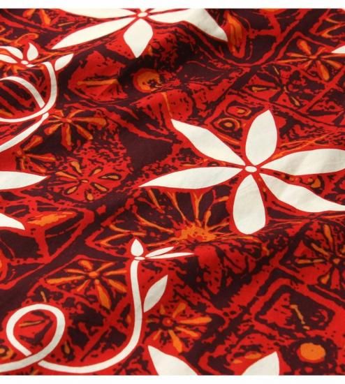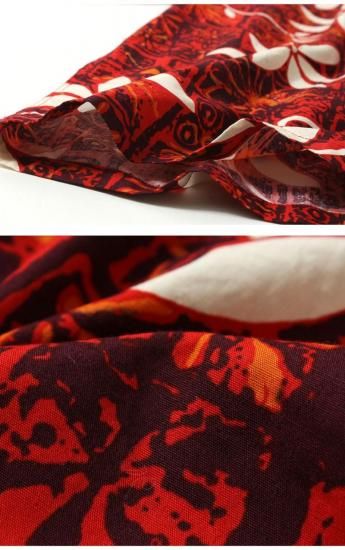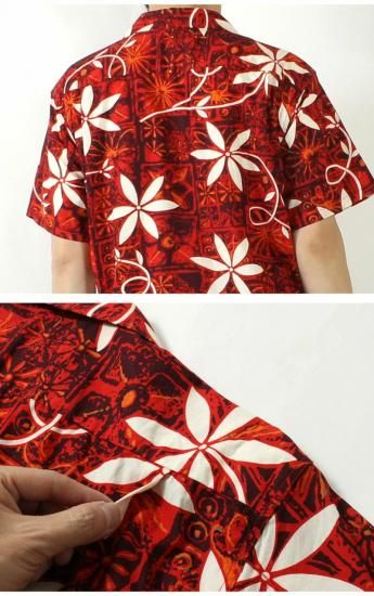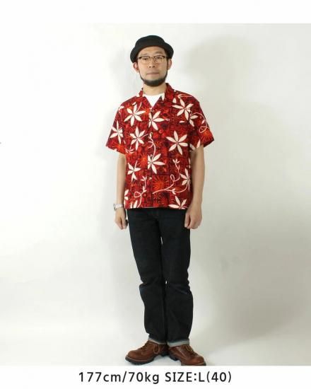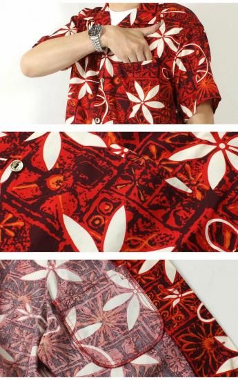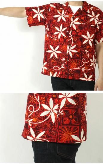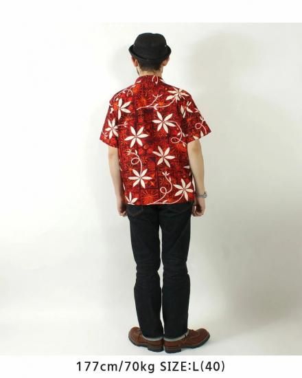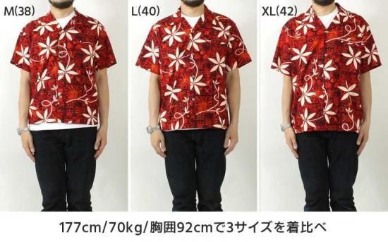 当時のハワイでアロハシャツとして作られたもので、カラーやプリント手法、ボタンの仕様など、実際のヴィンテージが忠実に再現されています。