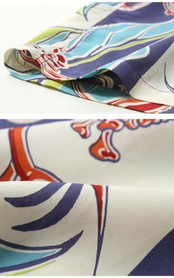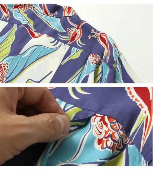 柄合わせは高い縫製技術を必要とすることや、生地を大量に使用するため、丁寧・贅沢な作りであり、レプリカアロハの老舗ならではの拘りが感じられます。