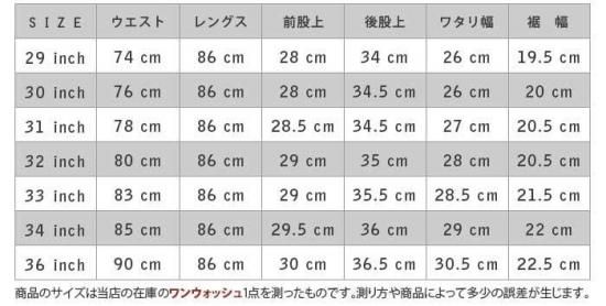 サイズは当店のワンウォッシュの在庫の一点を測ったもので、測り方や商品により多少の誤差があります。