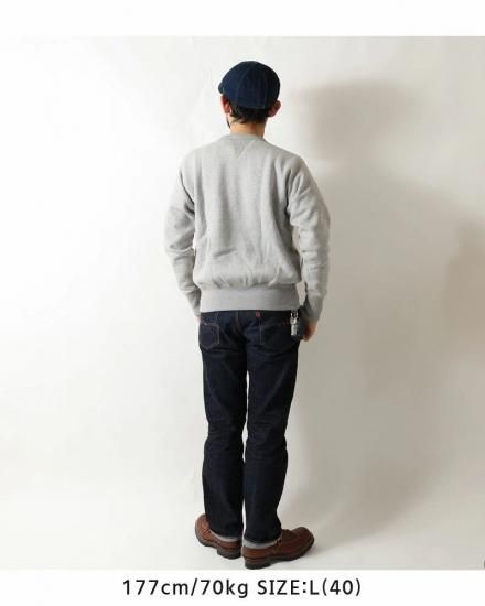 三角形の別生地をあしらった通称「Vガゼット」を首周りの前後に配した両V仕様が、ヴィンテージスウェットの雰囲気を感じさせます。