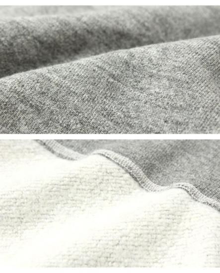 生地は保温性にも優れた、程よい厚みの綿100%、裏起毛のスウェット生地です。