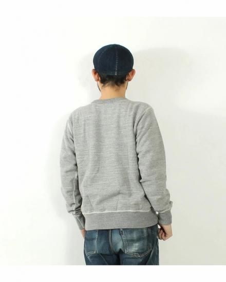 首元に三角形のマチを乗せて縫い付けた叩きつけのVガゼットや、長めにとられた袖、裾のリブなど、ヴィンテージスタイルのスウェットとなっています。